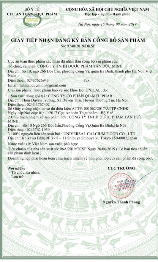 Unical For Rice là sản phẩm thực phẩm bảo vệ sức khỏe có công dụng hỗ trợ bổ sung canxi cho cơ thể, giúp tăng cường sức khỏe cho xương và răng. Sản phẩm được sản xuất từ những thành phần tự nhiên, an toàn cho sức khỏe, thích hợp với mọi đối tượng, đặc biệt là trẻ em, phụ nữ mang thai, cho con bú và người cao tuổi.