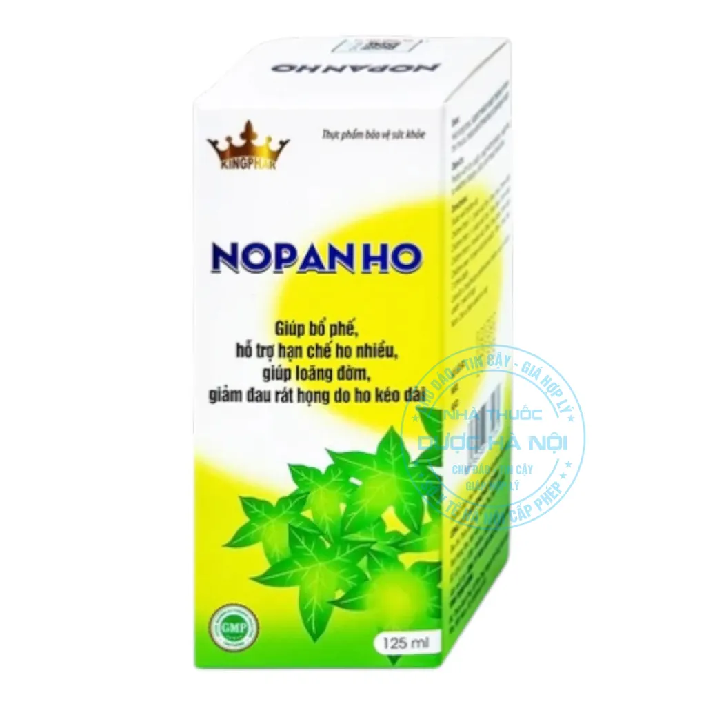Nopanho được bào chế dạng siro lỏng, tiện lợi, dễ uống và phù hợp cho cả người lớn lẫn trẻ nhỏ. Quy cách đóng gói thường là lọ thủy tinh hoặc nhựa PET dung tích 125ml, đi kèm thìa hoặc cốc đong đi kèm để đong liều chính xác. Sản phẩm có tem chống giả, mã QR kiểm tra nguồn gốc rõ ràng, đảm bảo người dùng mua đúng hàng chính hãng.