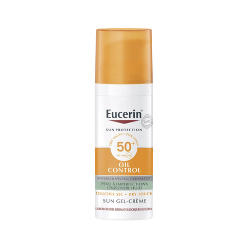 Kem chống nắng Eucerin Sun Gel-Cream Dry Touch Oil Control SPF50 có khả năng ngăn cản hơn 90% tia bức xạ, bảo vệ da không bị sạm màu.