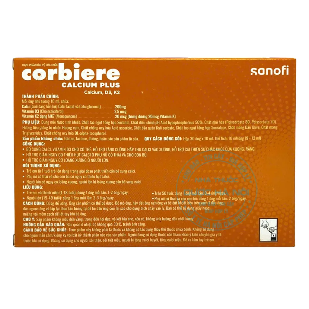 Dung dịch uống Calcium Corbière Extra là một sản phẩm bổ sung canxi được nhiều người tin dùng, đặc biệt là đối với những đối tượng có nhu cầu canxi cao như phụ nữ mang thai, trẻ em đang lớn, người già bị loãng xương...