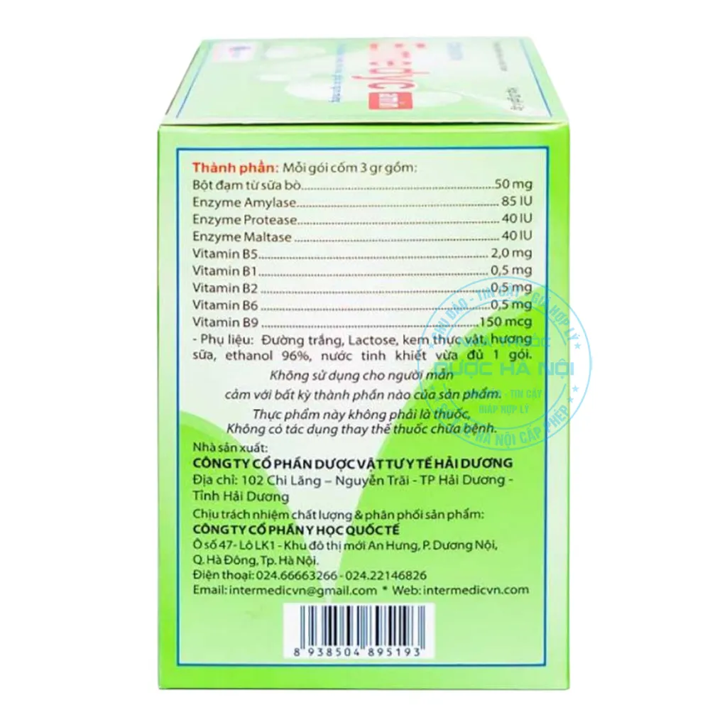 Enzym Amylase: Hàm lượng ≥85 UI, có vai trò phân cắt tinh bột thành glucose và maltose, góp phần vào quá trình tiêu hóa.