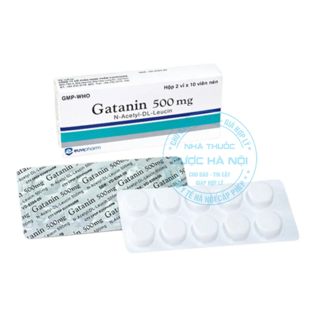 Gatanin 500mg là thuốc dạng viên nén, đóng gói trong hộp gồm 2 vỉ x 10 viên, xuất xứ từ công ty dược phẩm uy tín, với thành phần chủ đạo là N-Acetyl DL-Leucin.