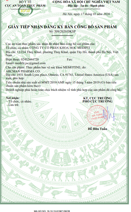 Với các thành phần tự nhiên an toàn và hiệu quả, Memotine chắc chắn sẽ là lựa chọn đáng tin cậy cho những ai quan tâm đến sức khỏe não bộ của mình. Hãy cân nhắc đưa Memotine vào chế độ chăm sóc sức khỏe hàng ngày của bạn để tận hưởng một cuộc sống tràn đầy năng lượng và tinh thần minh mẫn.