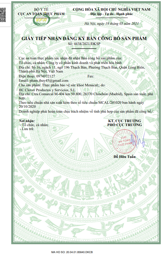 Với thành phần đa dạng như Canxi, Vitamin D3, Vitamin K2 (MK-7), Magie, Kẽm cùng các khoáng chất thiết yếu khác, Menacal đã trở thành sự lựa chọn hàng đầu cho những ai muốn duy trì sức khỏe xương chắc khỏe trong cuộc sống hàng ngày.