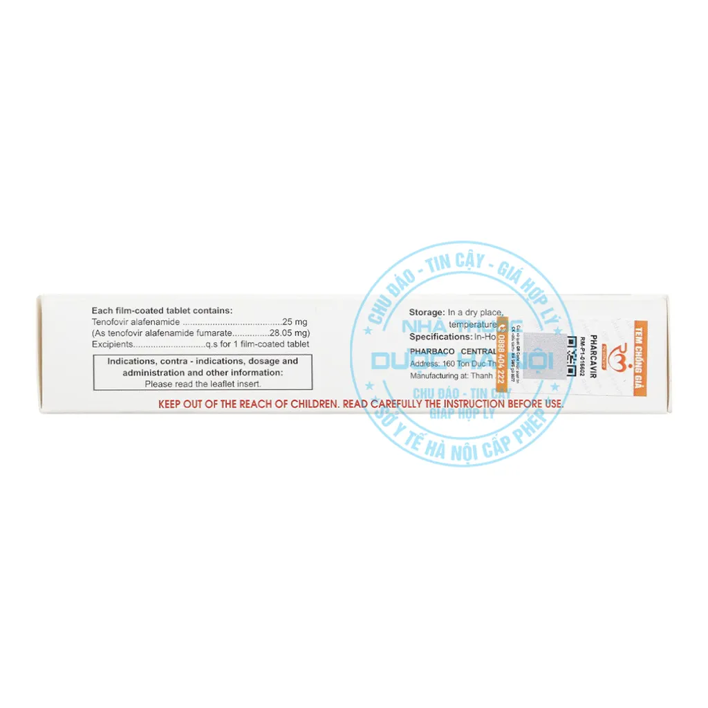Pharcavir 25mg là thuốc viên nén bao phim chứa hoạt chất Tenofovir alafenamide, hướng tới mục tiêu ức chế sự nhân lên của virus viêm gan B hoặc HIV trong tế bào.