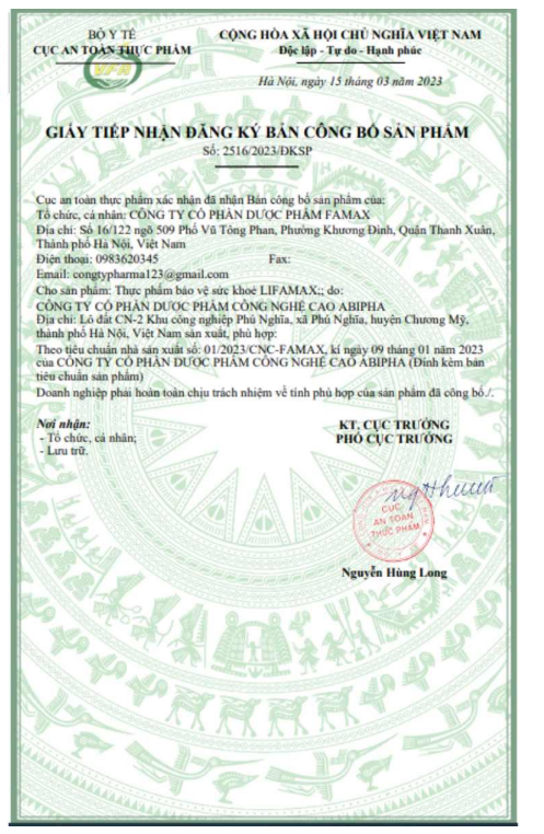 Với cách sử dụng đúng liều và lưu ý về chống chỉ định, Lifamax đem lại một giải pháp an toàn, hiệu quả giúp bạn duy trì sức khỏe gan và từ đó nâng cao chất lượng cuộc sống. Khám phá và lựa chọn Lifamax ngay hôm nay để tự tin bước vào cuộc sống năng động, khỏe mạnh hơn từng ngày.