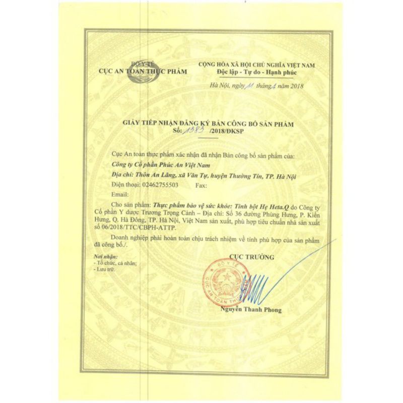 Tinh bột hẹ Heta-Q là một sản phẩm chức năng thực phẩm có nguồn gốc từ thiên nhiên, an toàn và lành tính, được nhiều người tin dùng.
